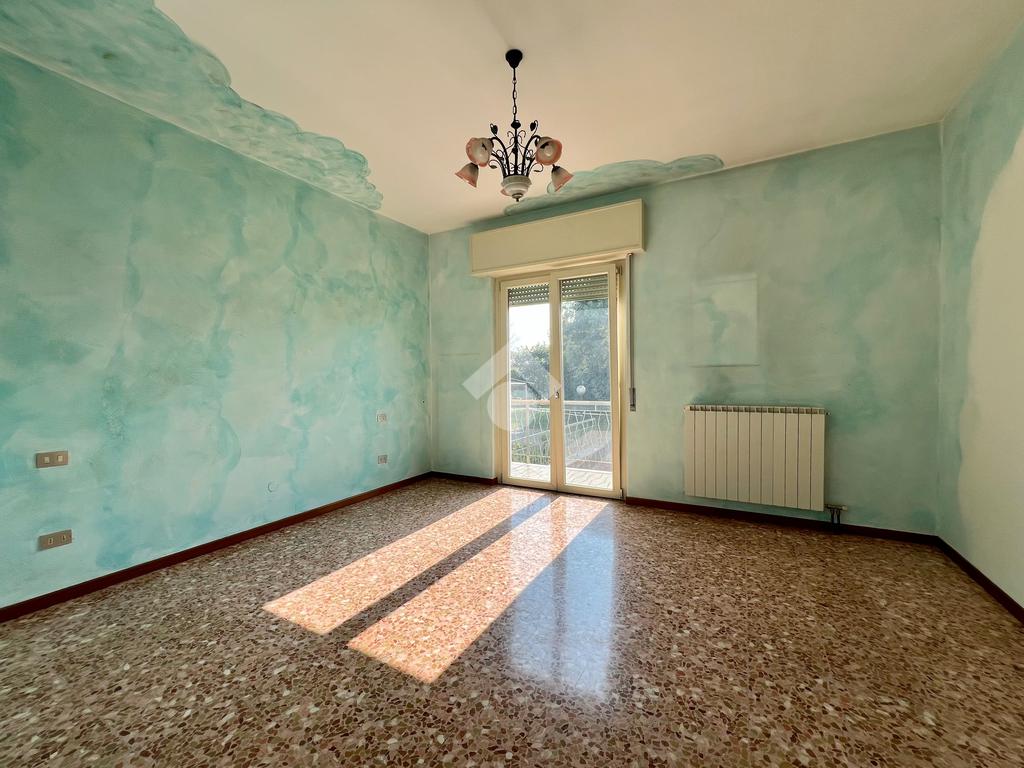 La zona del soggiorno si apre su un terrazzo, ideale come collegamento all'ampio giardino di proprietà di circa 200 mq che circonda l'abitazione, offrendo uno spazio verde privato.