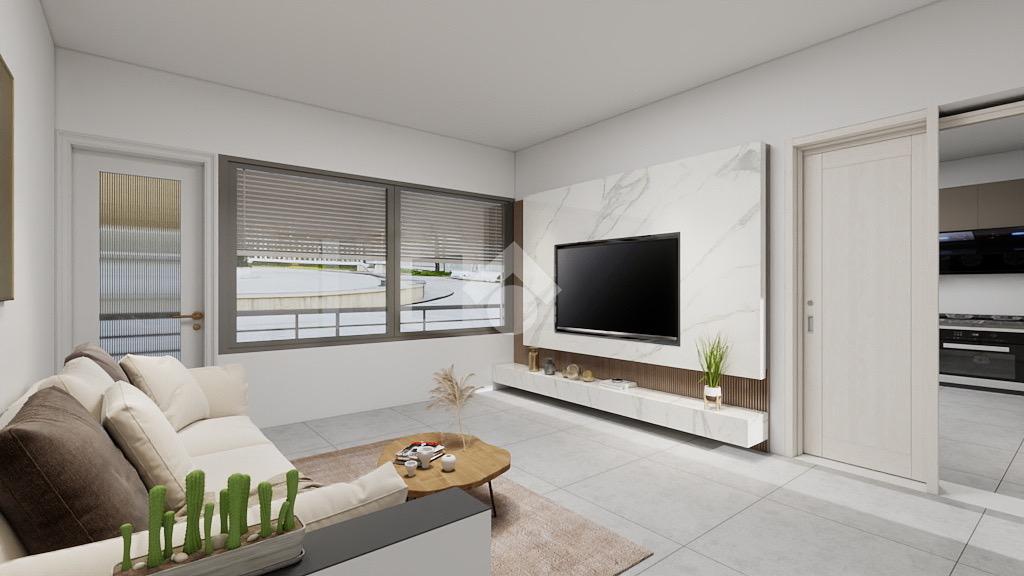 L’ingresso accompagna al soggiorno e a un ulteriore locale facilmente trasformabile in cucina abitabile; entrambi gli ambienti hanno accesso a un balcone in comune, che garantisce ottima luminosità e sfogo esterno.